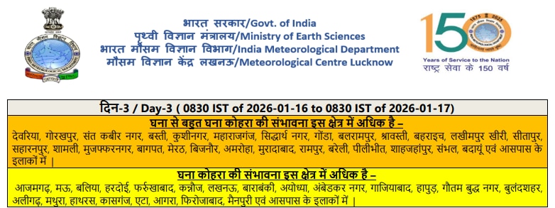 मौसम वैज्ञानिकों के मुताबिक, घने कोहरे के कारण सूर्य की रोशनी पर्याप्त रूप से नहीं पहुंच पाएगी, जिससे दिन के तापमान में भी भारी गिरावट आ सकती है. प्रशासन ने लोगों को हाईवे पर वाहन चलाते समय सावधानी बरतने और फॉग लाइट का अनिवार्य रूप से उपयोग करने की सलाह दी है.