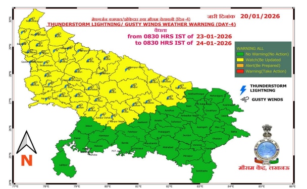 UP Weather Update: यूपी में 23 जनवरी को होगी मूसलाधार बारिश... मौसम विभाग ने इन 35+ जिलों में जारी किया अलर्ट.