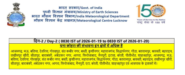 मौसम विभाग के अनुसार, आज सुबह और रात के समय इन जिलों में घना कोहरा छाए रहने के आसार हैं: