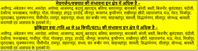 इन जिलों में बारिश के साथ बिजली गिरने का खतरा